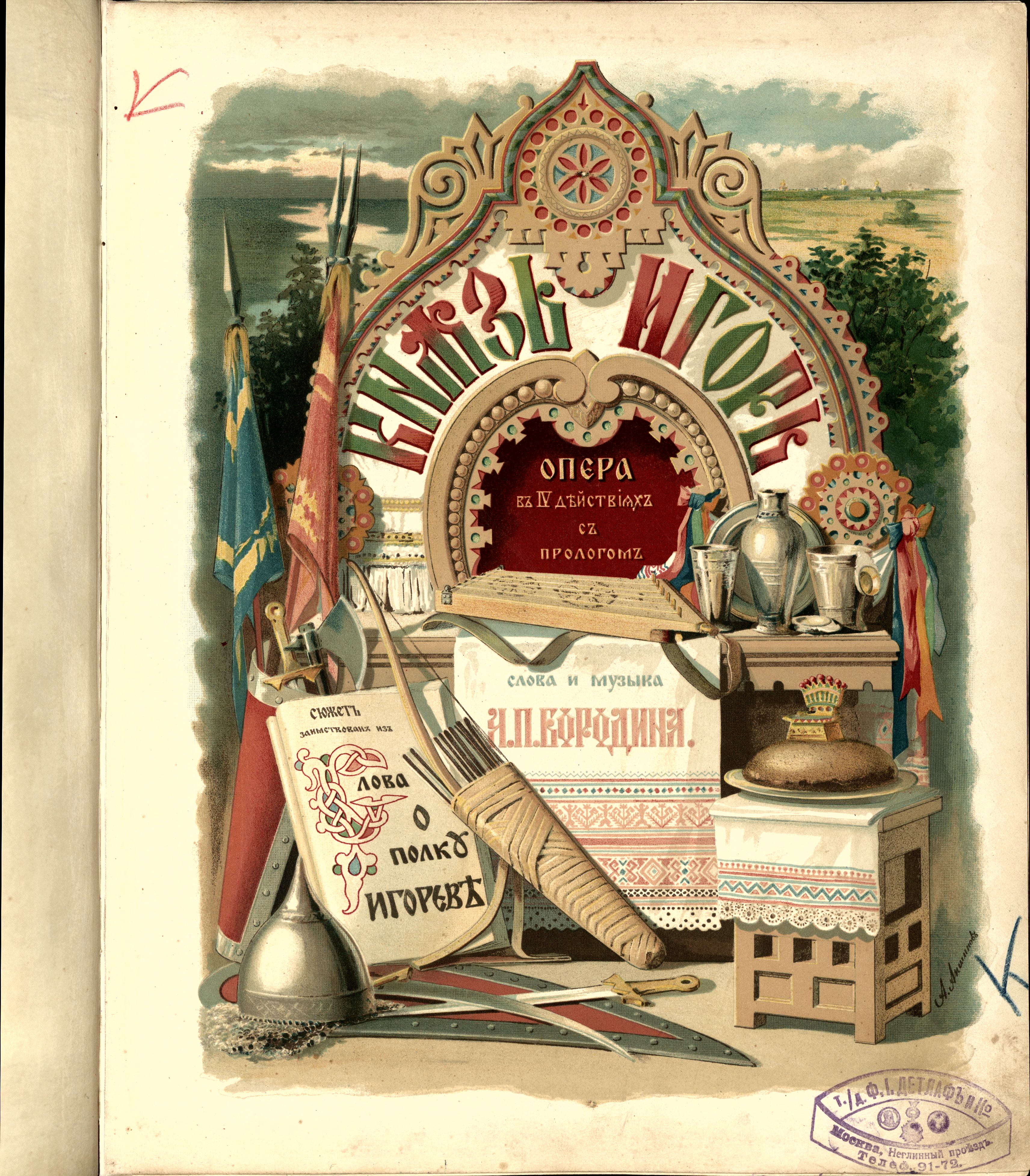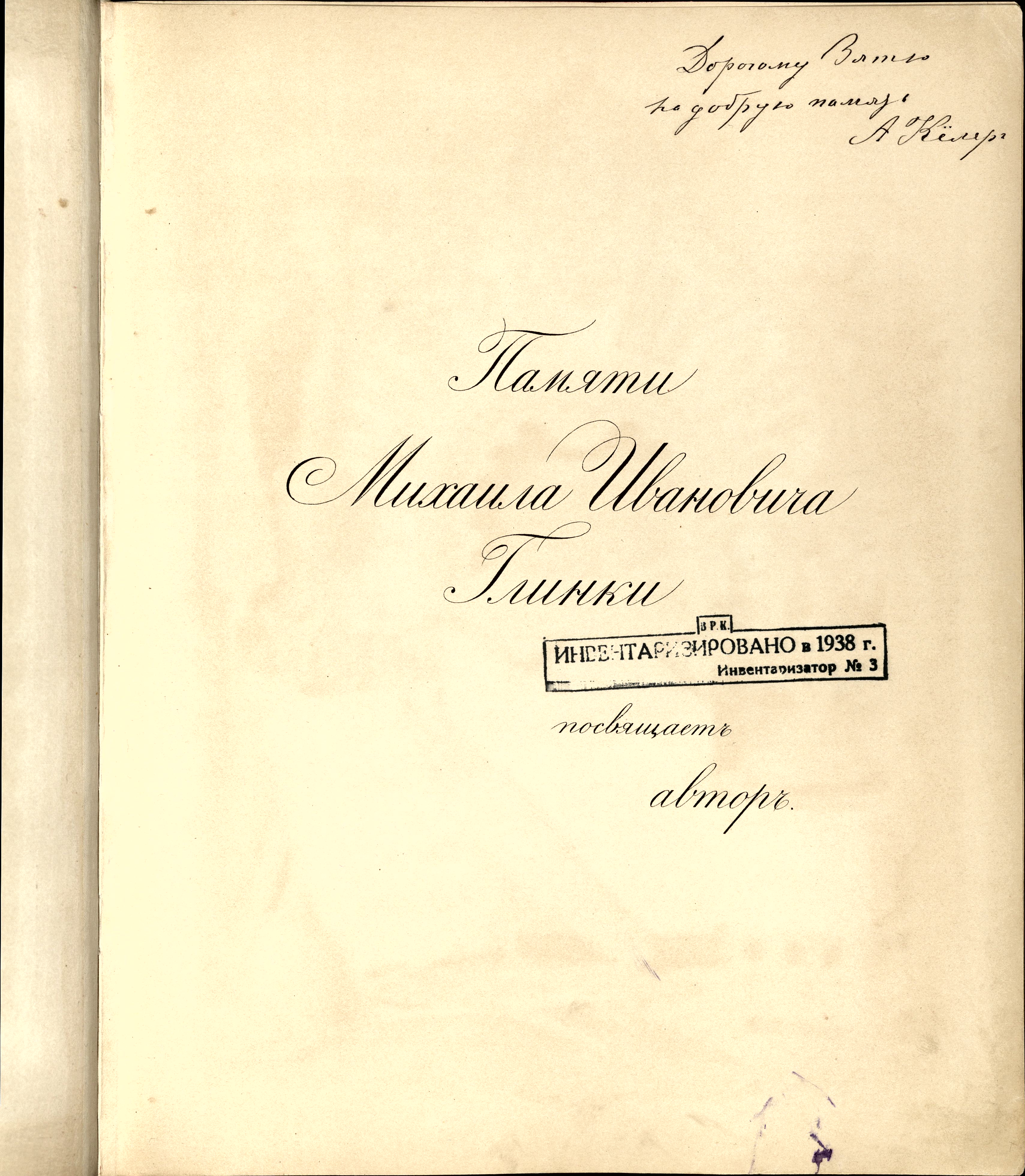 Комментарии: цветная иллюстрация титульного листа; портрет автора с факсимиле автографа; в переплете Переплетного заведения К. А. Гросман; с дарственной надписью А. Кёлера; Памяти Михаила Ивановича Глинки (посвящает автор); штамп т./д. Ф. И. Детлафъ и Ко